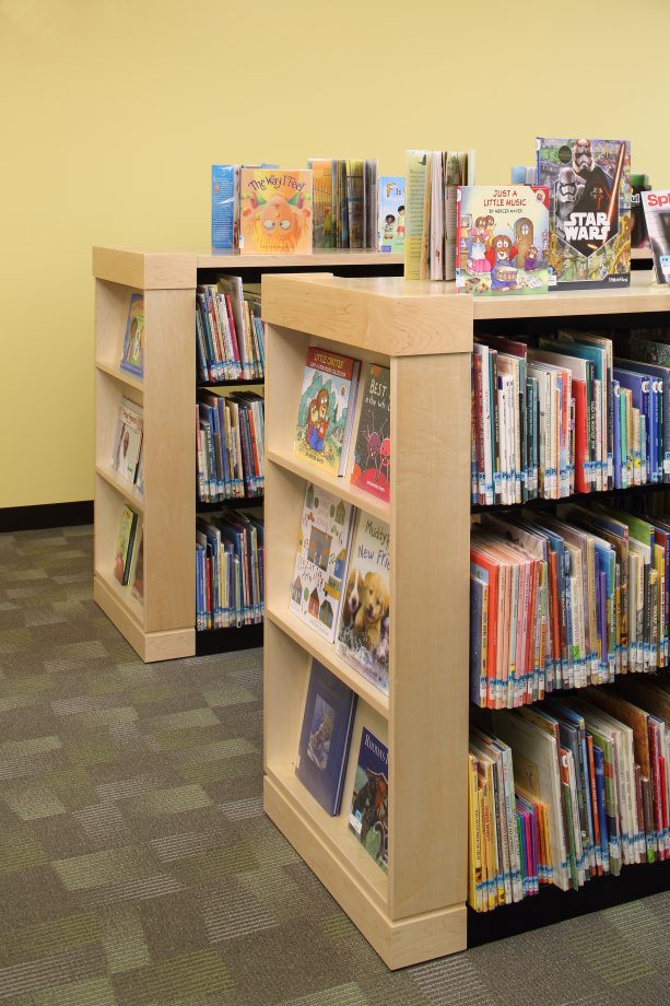 White oak and maple furniture built for the library, undergoing a major renovation and addition. All pieces were designed to relate closely to the existing 1920’s furniture and the significant architecture of the building. Building architects: Johnson Roberts Associates, Somerville, MA. Project included reading and study tables, carrels, periodical shelving, end panels and canopy tops, children’s room carrels and shelving.