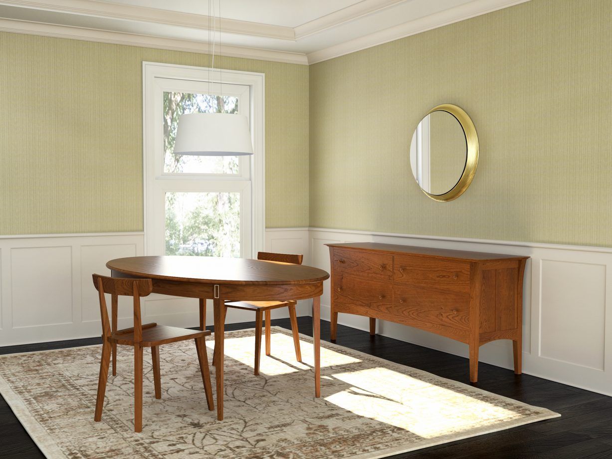 The first Philadelphia Table was built in 1991 for a client based in Philadelphia — hence its name. Crafted in cherry, it embodied everything we value: elegant proportion, honest materials, and lasting integrity. Its elliptical shape encourages conversation and closeness, comfortably seating six, while the subtle inlay detail at the top of each leg adds just enough formality to feel timeless.